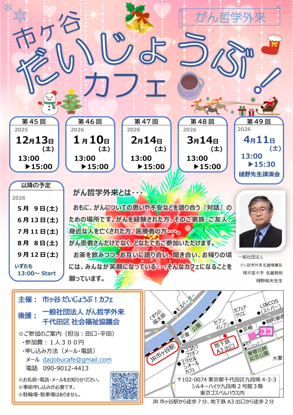 HOME > お知らせ > お知らせ 12/13だいじょうぶ!カフェ開催のお知らせ 11月 22, 2025 主の御名を賛美いたします。 東京都市ヶ谷にて、「だいじょうぶ!カフェ」を開催いたします。 第45回目となる今回は、12月13日土曜日、13時~15時となります。 会場は東京ゴスペルハウスです。JR市ヶ谷駅から徒歩7分となります。 ご興味のある皆様、ぜひお越しください。(事前申し込みが必要です) お待ちしております。 だいじょうぶ!カフェ チラシPDF Twitter Share LINE -お知らせ